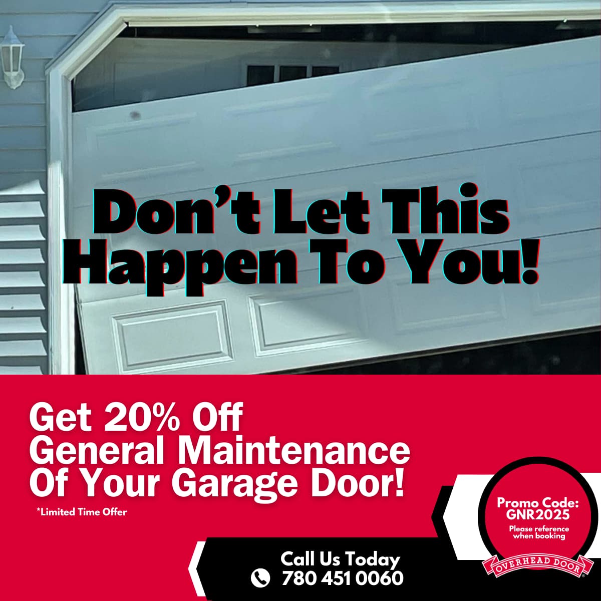 In need of some garage door maintenance or repair? For a limited time, get 20% OFF by referencing promo code: GNR2025 when booking at Overhead Door.